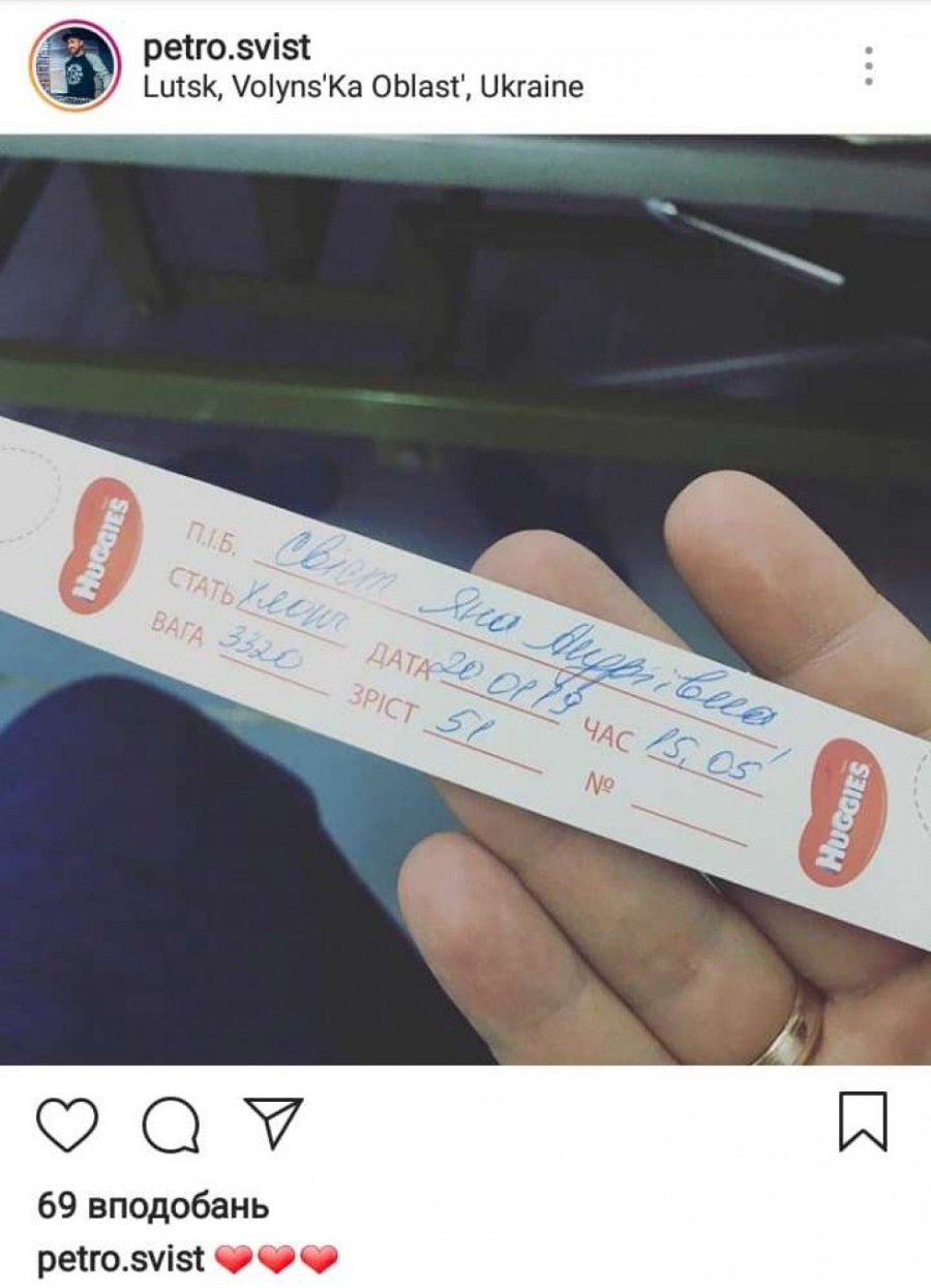 Хлопчик вагою 3320 г з'явився на світ 20 січня. Нагадаємо, зараз Петро грає у луцьких кавер-бендах Takabanda та LORI.