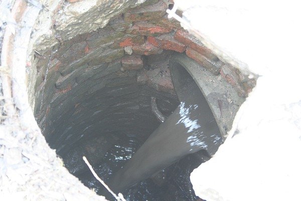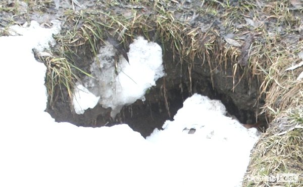 Поблизу школи №10 знаходиться відкритий каналізаційний люк, біля якого просів ґрунт. У ньому видно трубу, з якої великим потоком іде вода. В інших частинах вулиці або суцільне болото, або багато мокрого снігу.