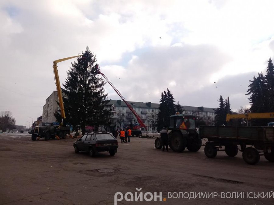 У Володимирі-Волинському демонтували головну новорічну ялинку, яка традиційно стояла на головній площі міста.
