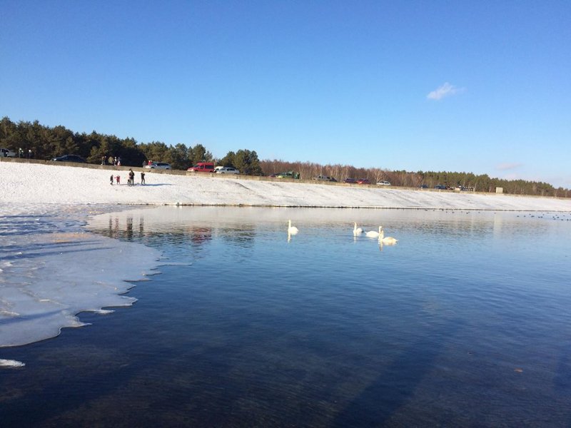 Туристична родзинка на Рівненщині: сотні лебедів зимують на озері. ФОТО