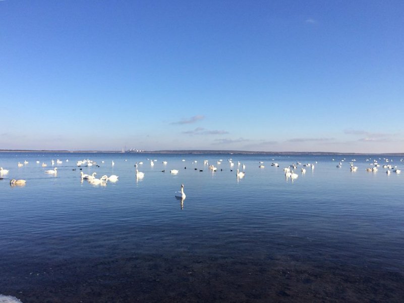 Лебеді та качки зимують на Нетішинському водосховищі, яке охолоджує Хмельницьку АЕС. Птахів на цій дамбі можна побачити і зі сторони Острога - потрібно проїхати кілька кілометрів за місто.