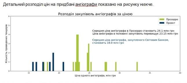 Загальні витрати на ангіографи в рамках Проекту становили 143,6 мільйона гривень, що становить 26% від закупівель «Прозорро» або 21% від загальної суми.