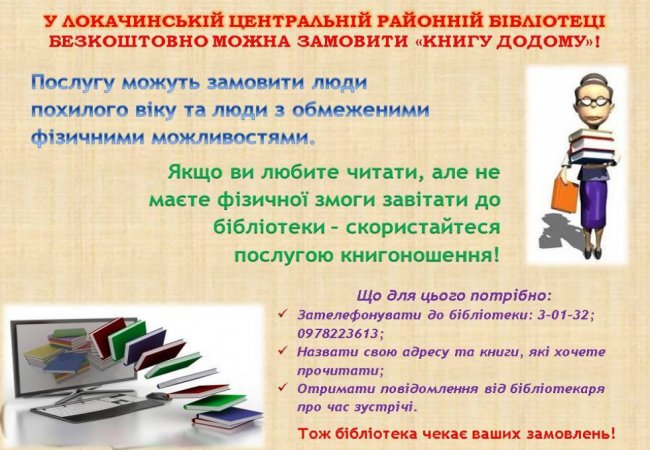 У Локачинській районній бібліотеці можна безкоштовно замовити книгу додому.