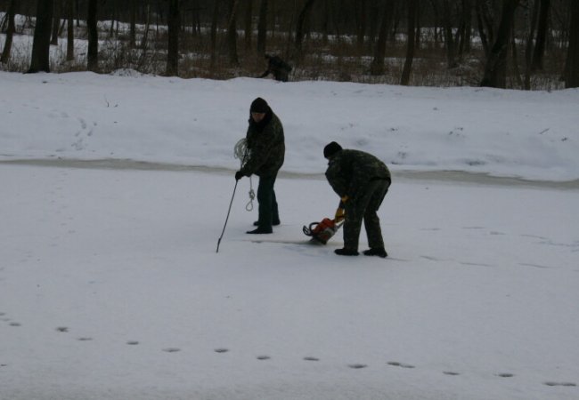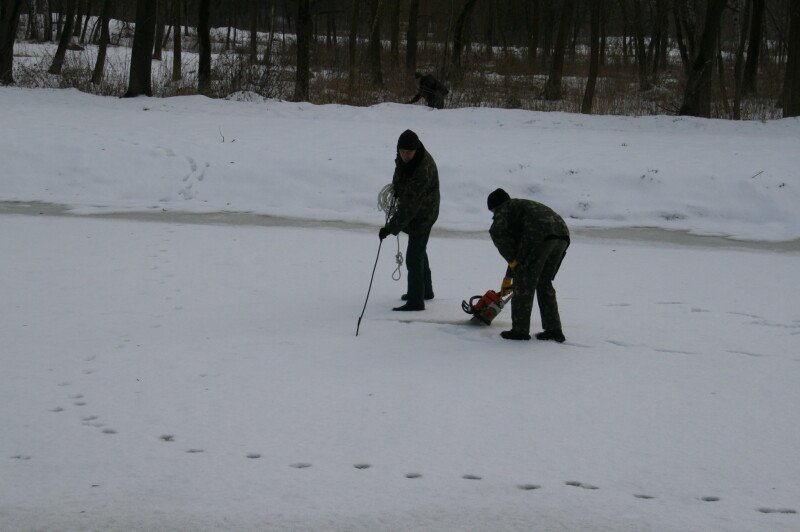 Працівниками КП “Парки та сквери м. Луцька” з 17 січня проводяться роботи з влаштування ополонок, які вкриваються гіллям ялини для попередження від замерзання, а сьогодні, 24 січня, окрім влаштування ополонок збагачували воду киснем двома компресорами, якими нагнітали повітря під лід.