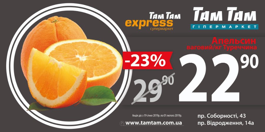 Апельсин ваговий кг Туреччина – 22,90 грн/кг;