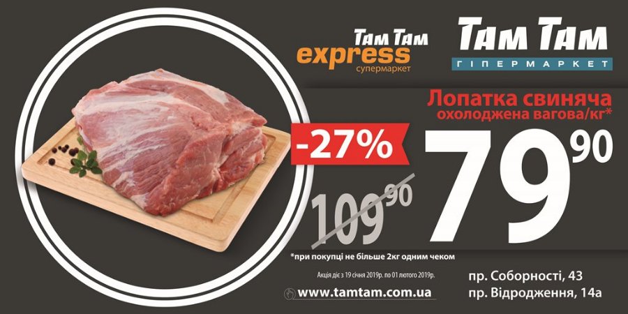Лопатка свиняча охолоджена вагова кг – 79,90 грн/кг;