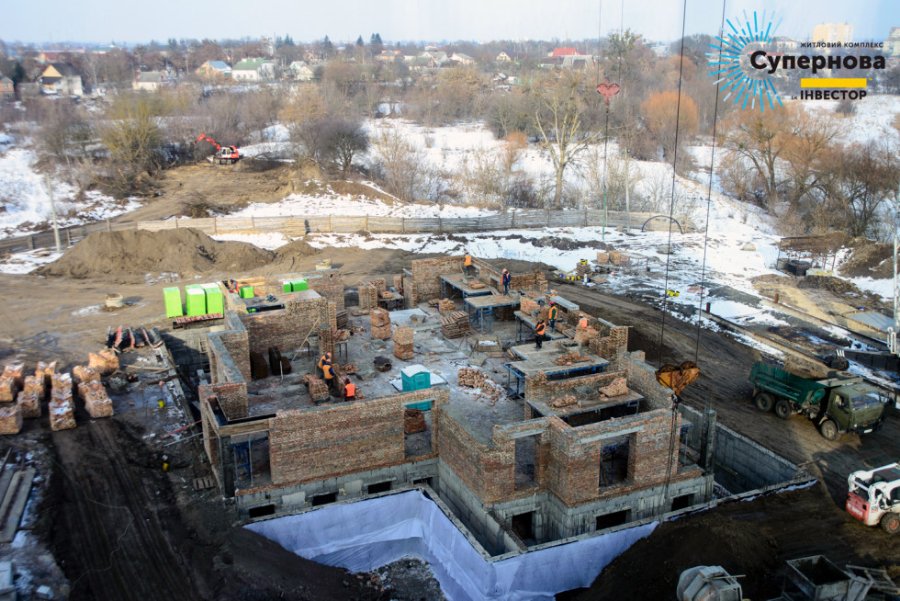 Станом на 21 січня в п'ятому будинку завершують зведення першого поверху і готуються до перекриття. Роботи відбуваються згідно графіку.