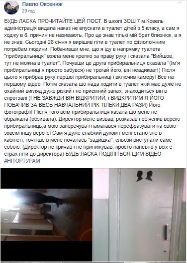 На Волині через гнівний пост школяра у соцмережі розгорівся «туалетний» скандал