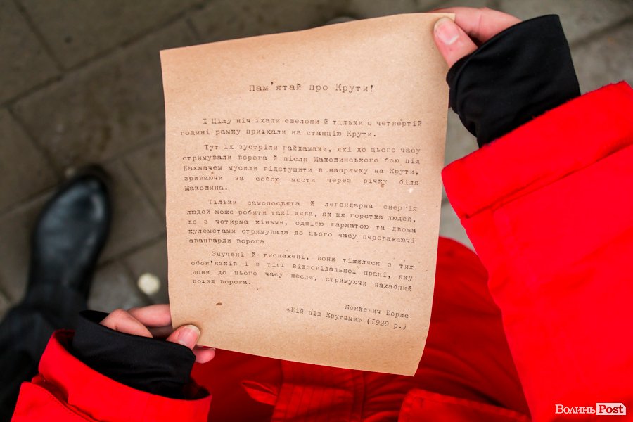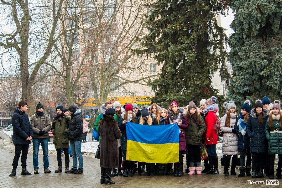У центрі Луцька молодь влаштувала флешмоб у пам'ять про Крути. ФОТО