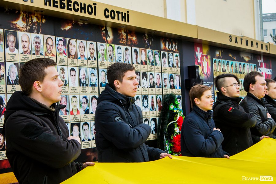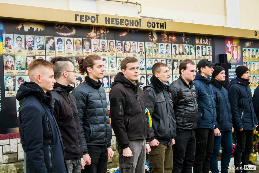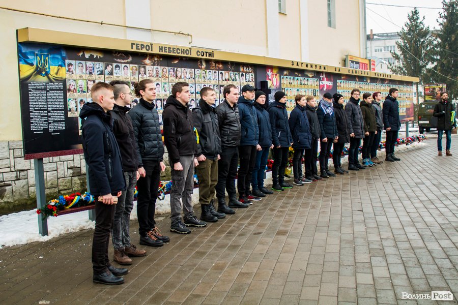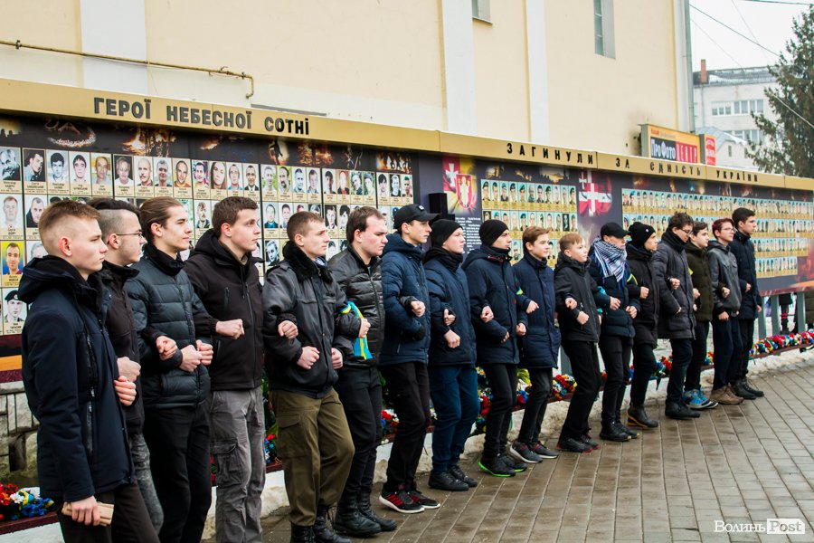 Вишикувавшись у шеренгу біля пам’ятного фотостенду «Герої Небесної Сотні – Загинули за єдність України» та взявшись за руки, хлопці марширували під твір Олекси Кобця «На Крути».
