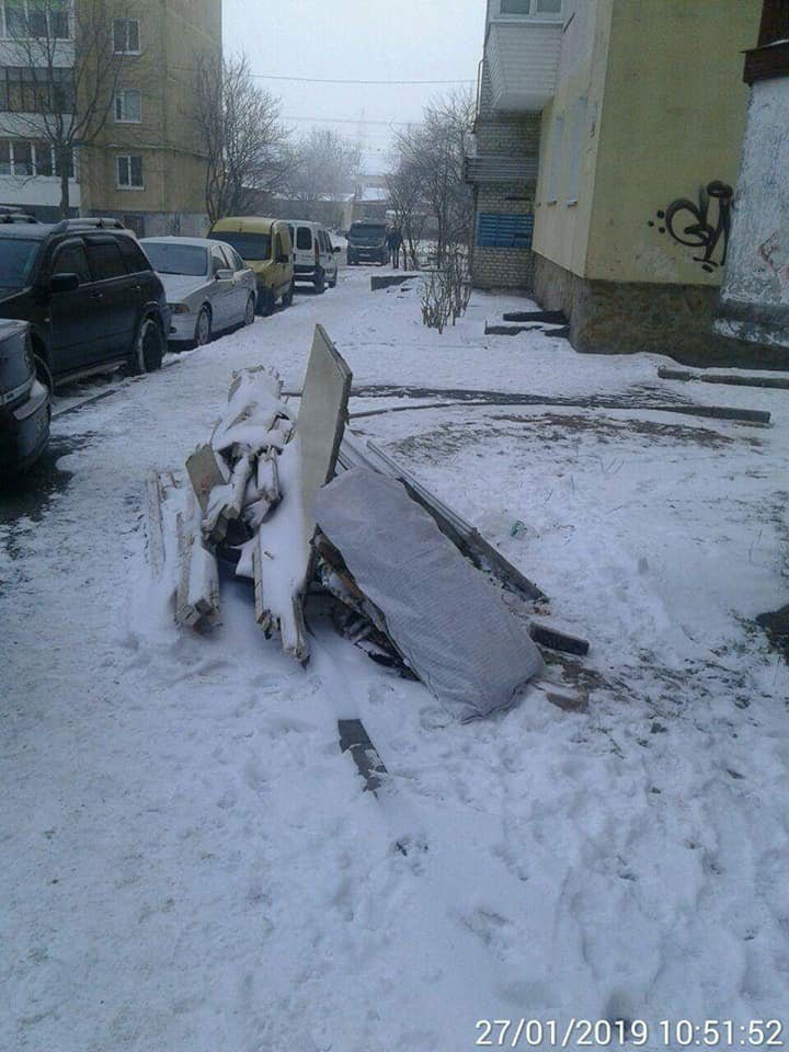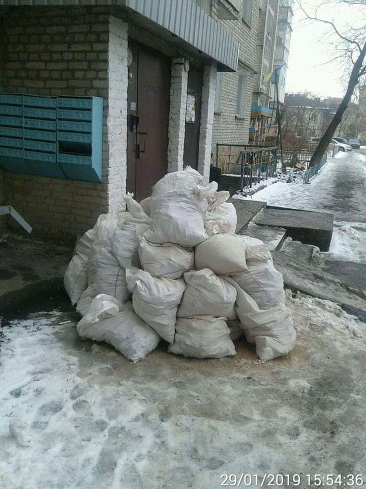 Такі смітники влаштували на проспекті Грушевського, 1 та вулицях Словацького, 12, а також 8-го березня, 33. Мішки з будівельним сміттям, дошки та ганчір’я – все розкидано на тротуарах та поблизу під’їздів, де щоденно проходить багато людей.