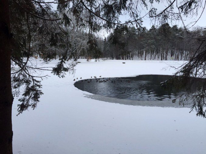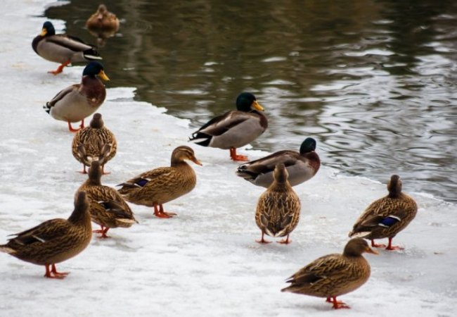 На головному ставку Воротнівського ботанічного заказника другу зиму поспіль знаходять корм і підтримку лісівників дикі качки.