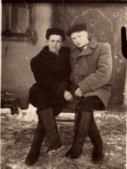 Цікаве й фото, де з-під пальта у миловидного сільського парубка видніється вишиванка.