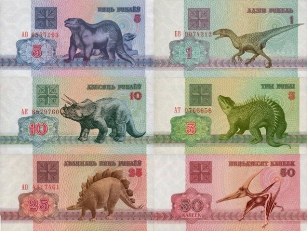 1 квітня білоруське відділення «Радіо Свобода» повідомило про те, що великий банк країни - МТБанк - розробляє новий дизайн деяких купюр. 50 копійок (паперові) і 1, 3, 5, 10 і 25 рублів збережуть колірну гамму, але отримають нові зображення тварин. З безлічі особин МТБанк вибрав динозаврів.