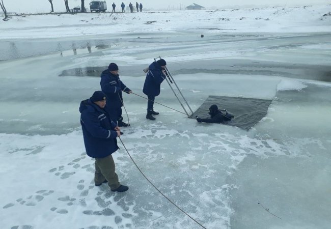 Для пошуків чоловіка залучили 8 чоловік особового складу групи, дві одиниці техніки. П’ятеро водолазів почергово у спеціальному спорядженні здійснюють занурення під кригу, де обстежують дно акваторії пляжу та дно річки вниз по течії.