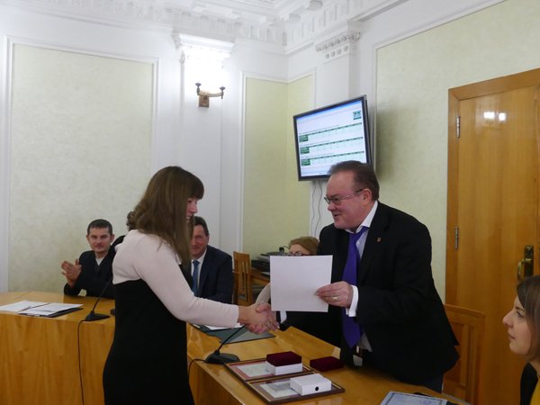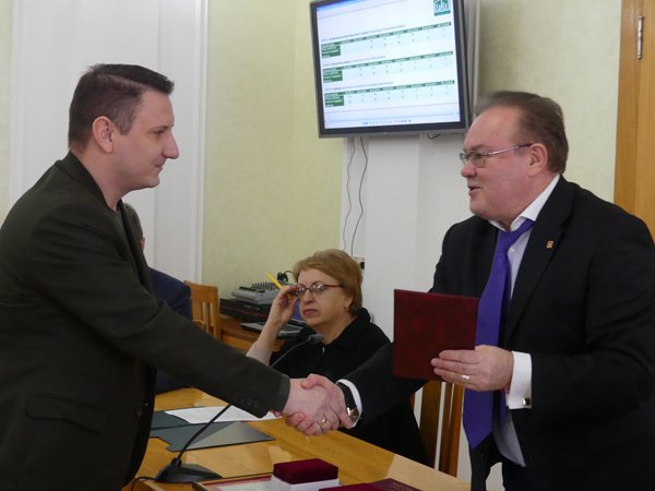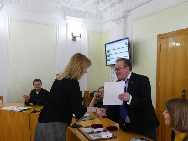 Крім того, диплом доктора економічних наук отримав доцент кафедри аналітичної економіки та природокористування Костянтин Павлов, атестат професора – доктор історичних наук, професор кафедри всесвітньої історії Людмила Стрільчук. Костянтину Павлову та професору, завідувачу кафедри аналітичної економіки та природокористування Олені Павловій ректор вручив Почесні грамоти Національної служби посередництва та примирення.