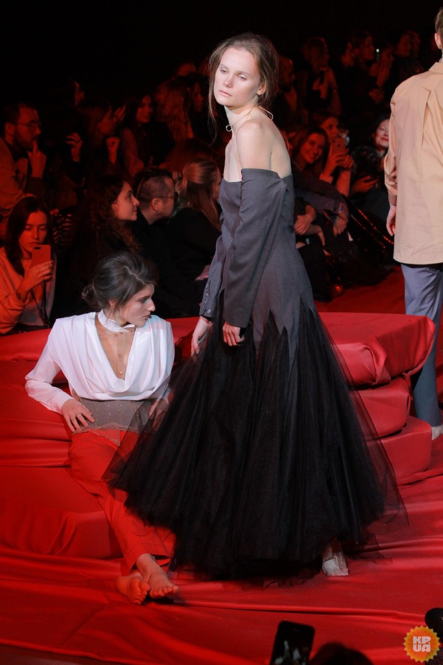 Коли всі зайняли свої місця на застеленому шовком підлозі, моделі почали ходити між ними.