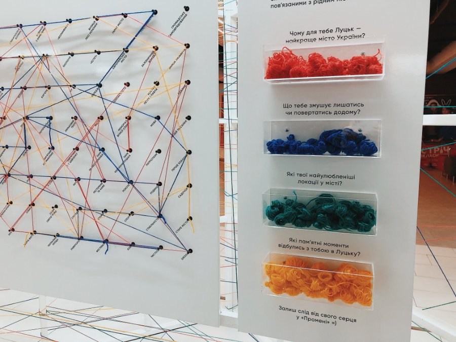 Кожне запитання має свій колір, тобто моточок нитки, який охочі прив’язують до слів, які для них важливі. Те, що ми любимо, цінуємо, що змушує згадувати на великих відстанях і повертатись у Луцьк знову.