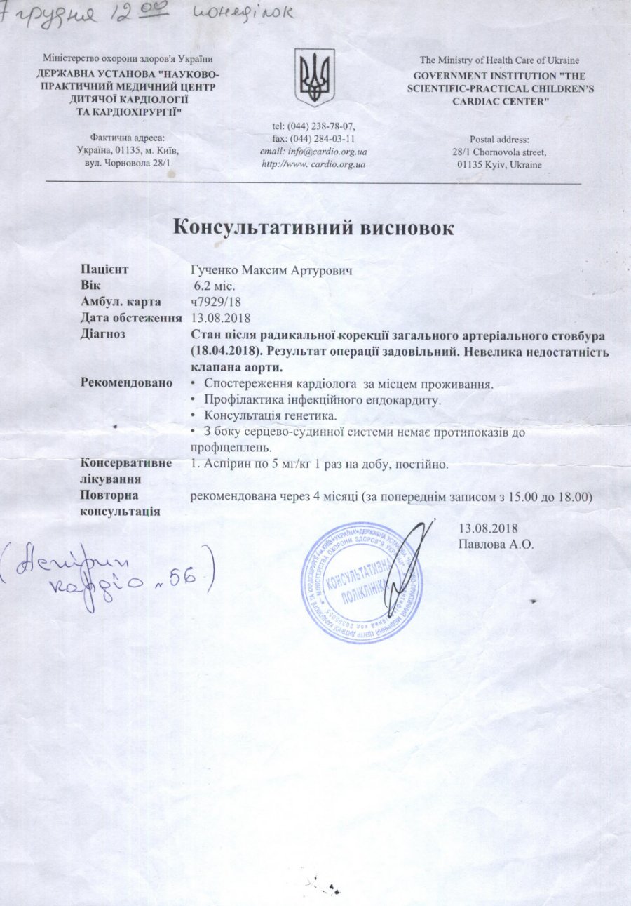 Її провели безкоштовно, а на лікування батьки витратили близько 95 000 тисяч гривень. Зараз Максимко потребує реабілітації, яка обійдеться у більше ніж 10 000 тисяч гривень, а у рік потрібно зробити ще одне хірургічне втручання – замінити клапан на серці.