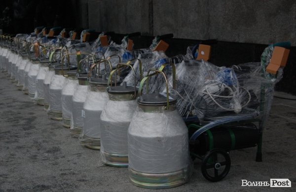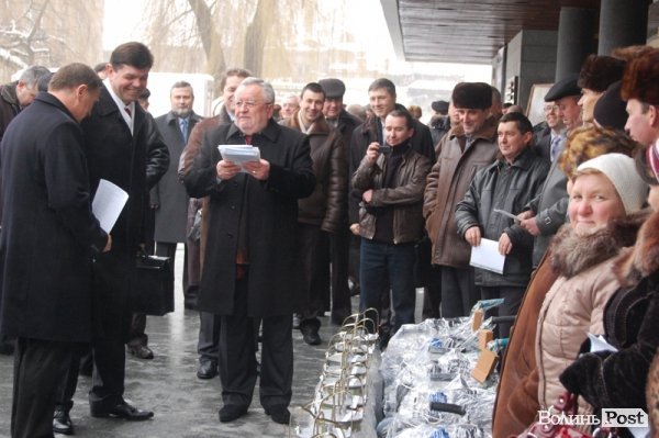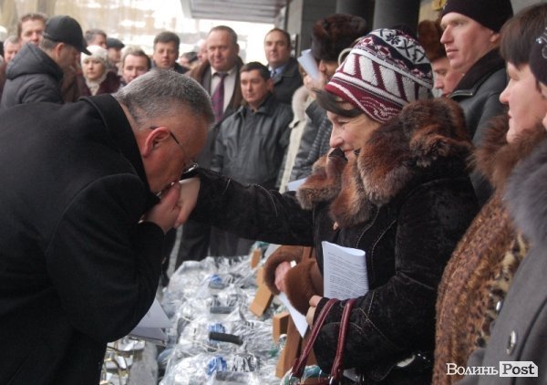 24 січня на Театральному майдані Луцька волинським селянам-одноосібникам, які тримають три і більше корів, обласна влада вручила доїльні апарати.