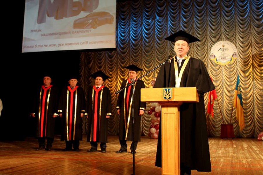Для того, аби вручити своїм вихованцям дипломи, під гучні оплески на сцену були запрошені ректор Луцького НТУ, проректори та декани, вбрані у мантії. Спільно з усіма присутніми вони виконали Гімн України. Потому із вітальним словом виступив ректор Луцького НТУ Петро Савчук, який оголосив відкриття урочистої церемонії.