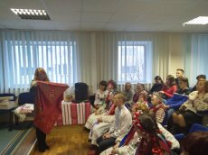 Діти мали можливість ознайомитися з виставкою «Волинське вбрання». Про тематику виставки, її особливості та значення розповіли члени Національної спілки майстрів народного мистецтва України Софія Пасюк, завідувач відділу образотворчого та декоративно-прикладного мистецтва коледжу культури та мистецтв, викладач Орися Щур.