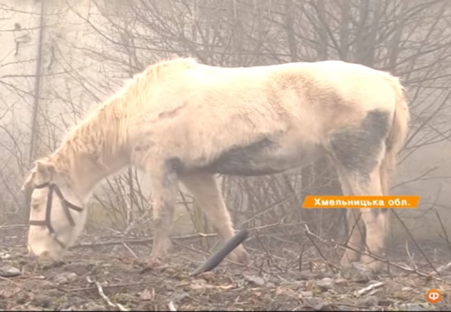 Концтабір для тварин на Хмельниччині: власник ферми тримає коней у голоді. ВІДЕО