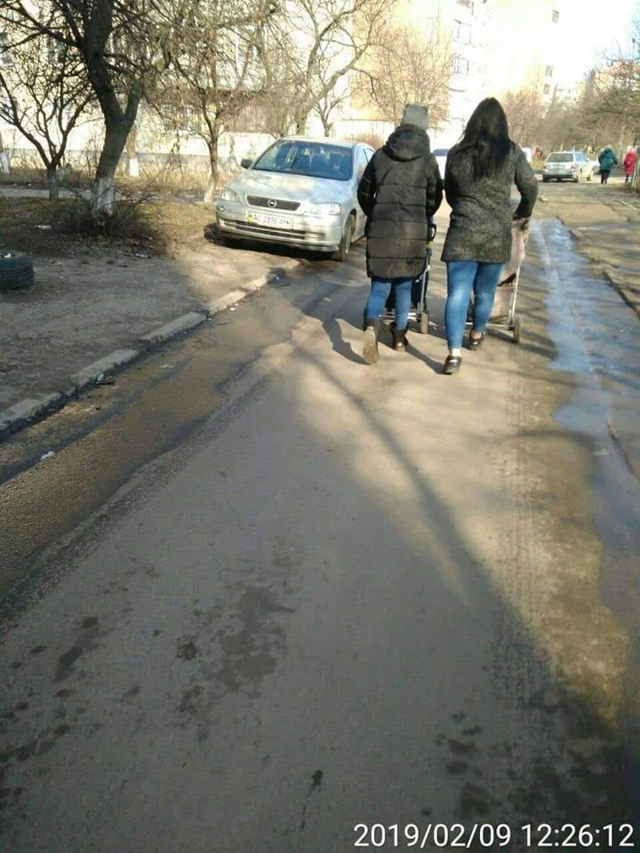 Через автохама у Луцьку молоді мами з візочками гуляють на дорозі. ФОТО