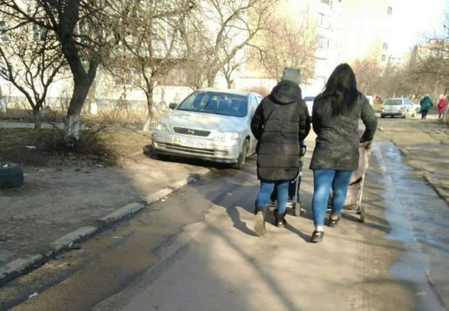 Водій припаркував своє авто на тротуар так, що мамам з дитячими візками довелося об'їжджати по проїжджій частині.