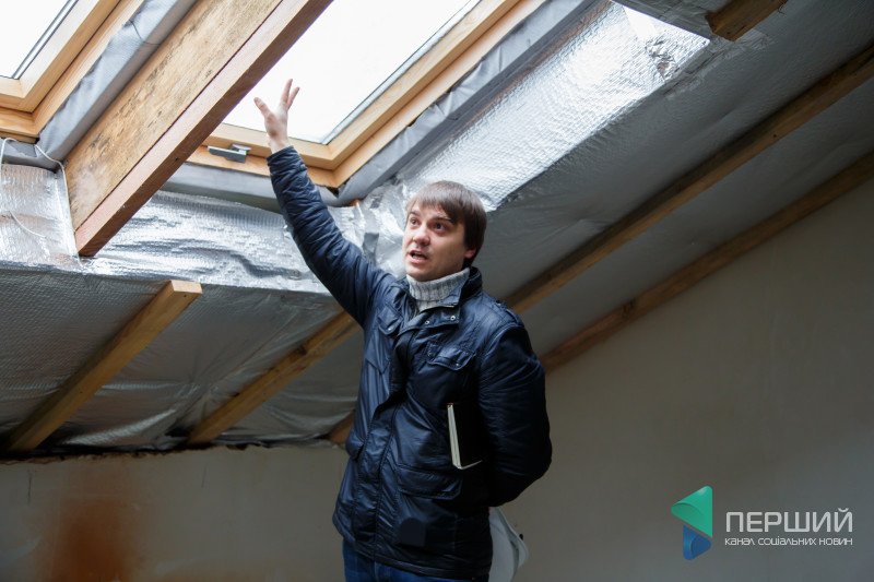 «Ці мансардні вікна – дуже дорогі. Під ними, найімовірніше, буде ліжко. Зараз такий тренд – ніжитись у ліжку і дивитись на зорі чи спостерігати, як падає дощ… До речі, тут, за містом, небо не таке загазоване і зорі краще видно», – зауважив Дмитро.
