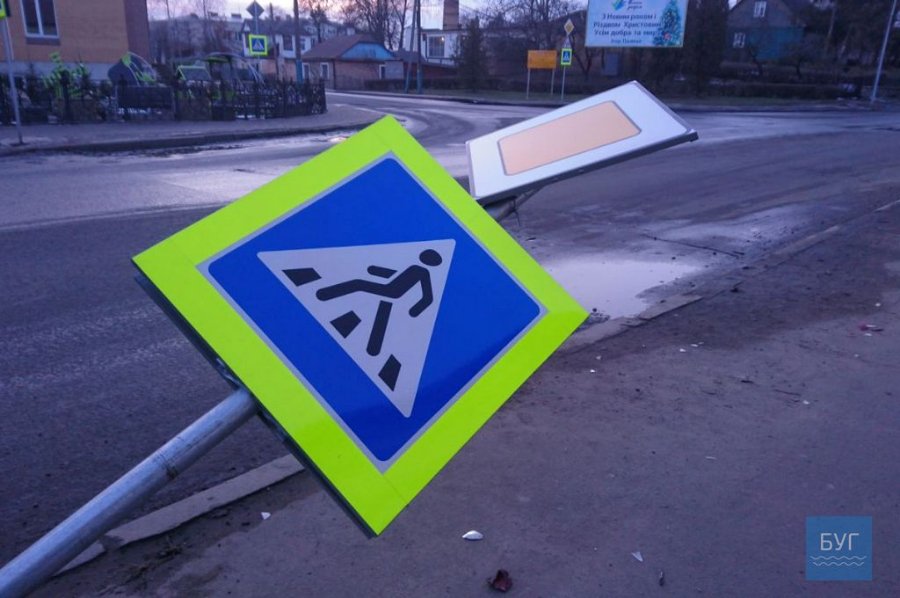 У Володимирі-Волинському водій у стані алкогольного сп'яніння збив дорожній знак.
