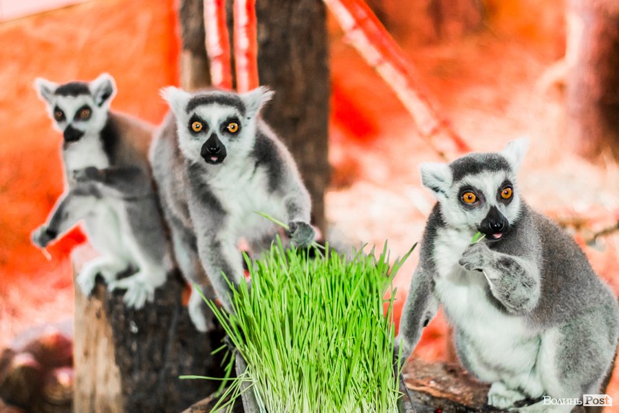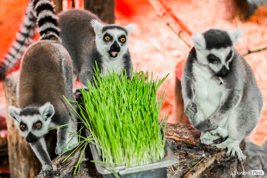 Як розповіла Людмила Денисенко, у лемурів панує матріархат. Тож самка взяла на себе обов’язки голови сім’ї. Торік у пухнастої парочки народилося маля.