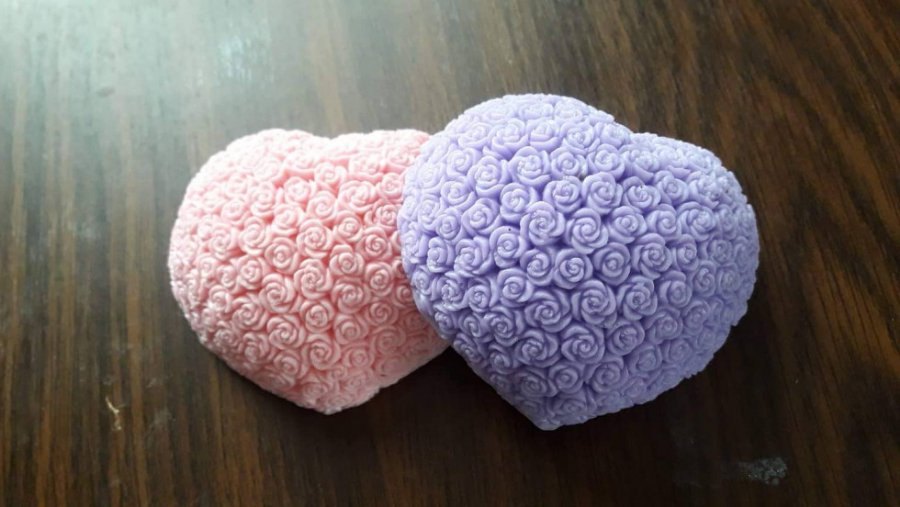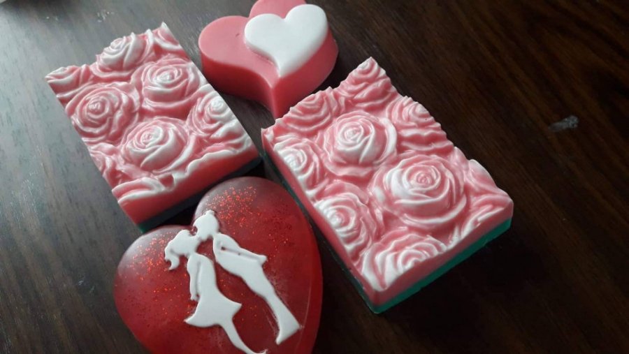 Перша об’ємна робота з миловаріння у молодої майстрині була на новорічну тематику. Ці вироби Інна представляла на «Різдвяних зустрічах» у районному будинку культури. А до Дня Святого Валентина, приготувала нові подаруночки – мило у вигляді різнокольорових сердечок, із зображенням закоханої пари, мильні бутоньєрки. У її композиціях квіти виглядають, як справжні, на перший погляд і здогадатись важко, що є «мильними». Вражає палітра вміло поєднаних кольорів, природні аромати просто заворожують.
