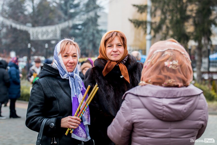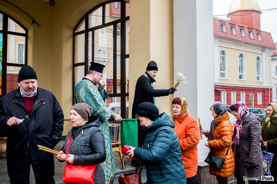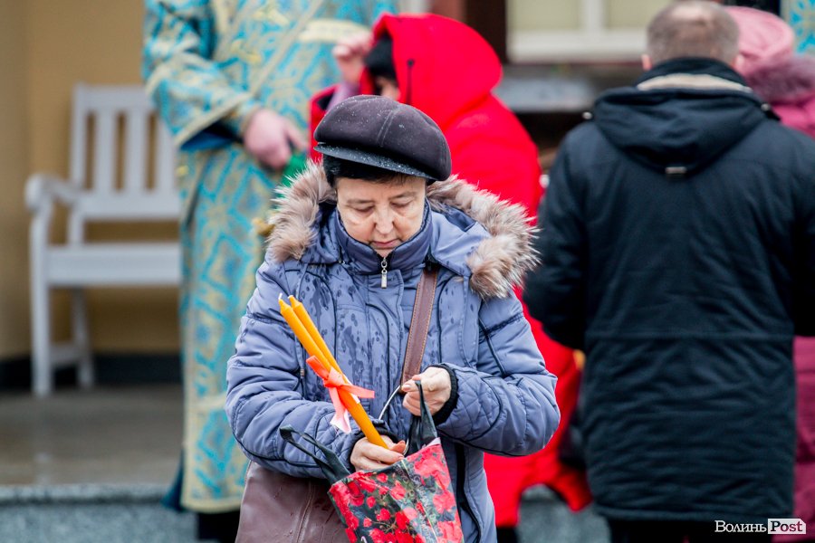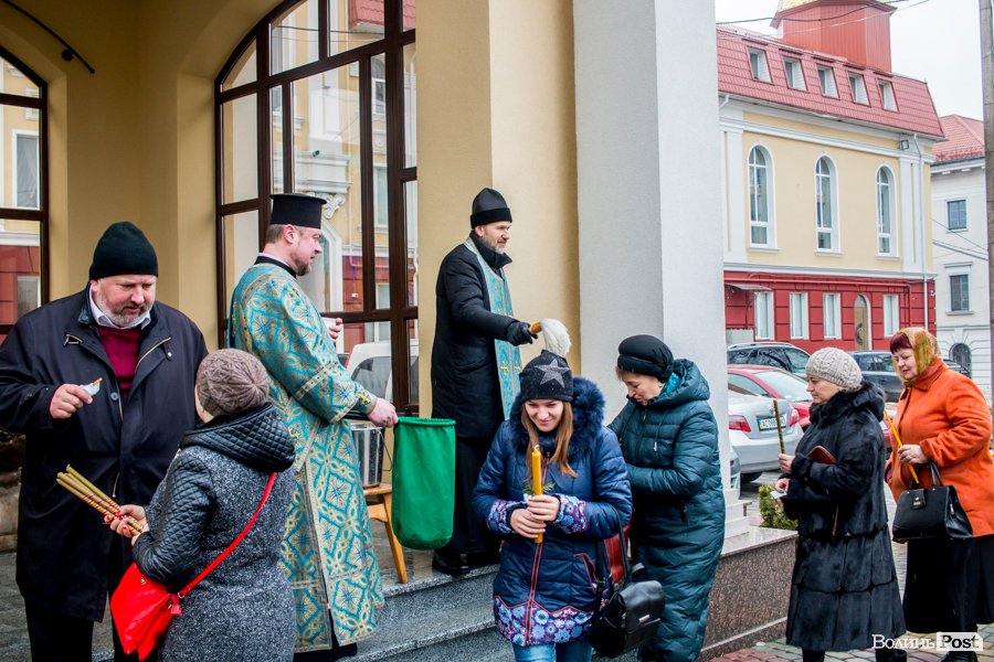 Від ранку, 15 лютого, десятки волинян йдуть у Свято-Троїцький кафедральний собор Луцька, аби освятити свічки та воду і принести частинку благодаті у свої домівки.