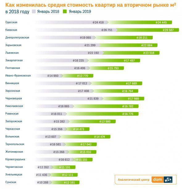 На Волині ж ситуація така: у січні 2018 року середня ціна квадратного метра становила 13 607 гривень, а у січні 2019 - 14 474 гривень.