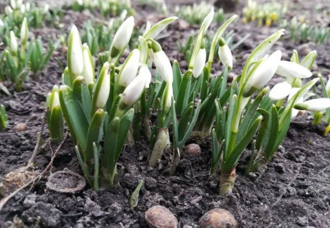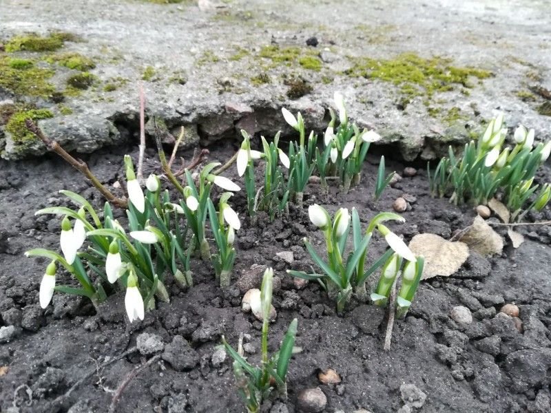 У Луцьку на вулиці Баранова зацвіли підсніжники.