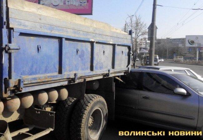 У Луцьку вантажівка комунальників в'їхала у Nissan. ФОТО