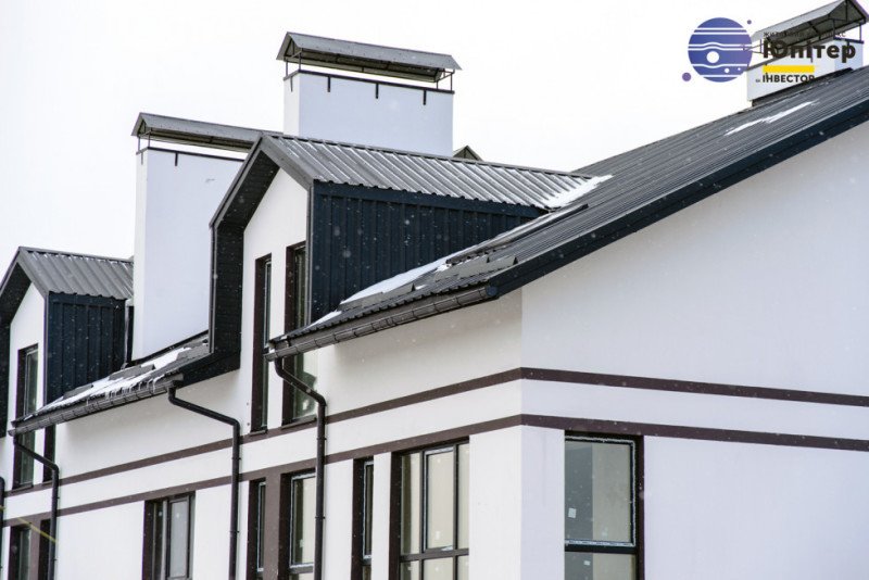 Тепло- та шумоізоляція. Будинок утеплений пінопластом та мінеральною ватою, а на даху є гідроізоляційна плівка. Оселя зберігатиме тепло, а стеля буде захищеною від несприятливих погодніх умов. До того ж пориста структура мінвати володіє звукоізоляційними властивостями.