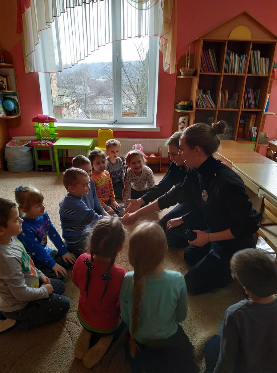Під час зустрічі з дітьми патрульні розказали їм про специфіку своєї роботи, показали, як працюють спецзасобами, які використовують у своїй роботі патрульні поліцейські, – рації, кайданки, бодікамери, патрульний автомобіль. Усе це викликало неабиякий захват та здивування у малечі.