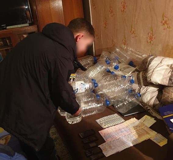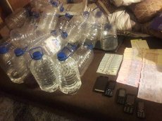 Вилучено 2265 літрів рідини прозорого та коричневого кольору із запахом спирту у різних ємкостях на загальну суму понад півмільйона гривень, ароматизатори, барвники, 1 тисяча доларів США, понад 6 тисяч гривень, мобільні телефони та чорнові записи.
