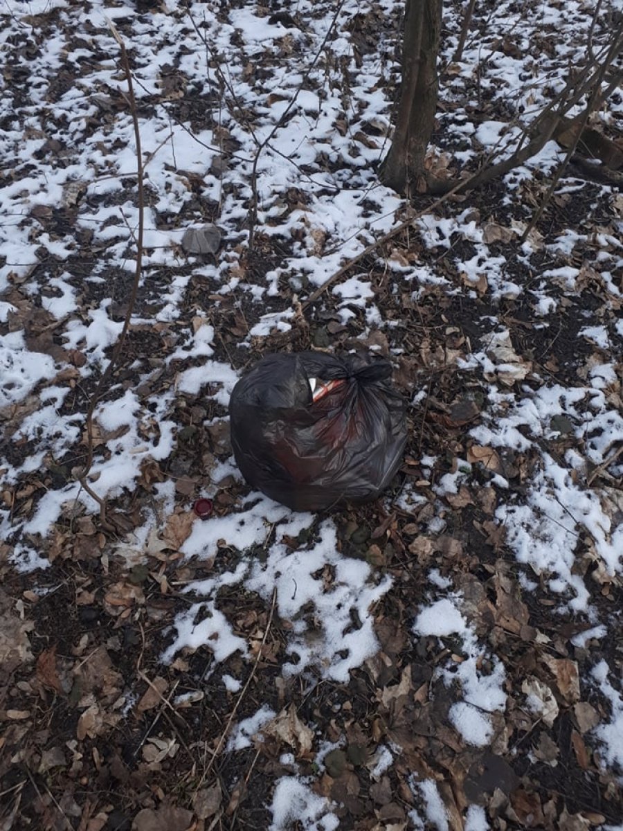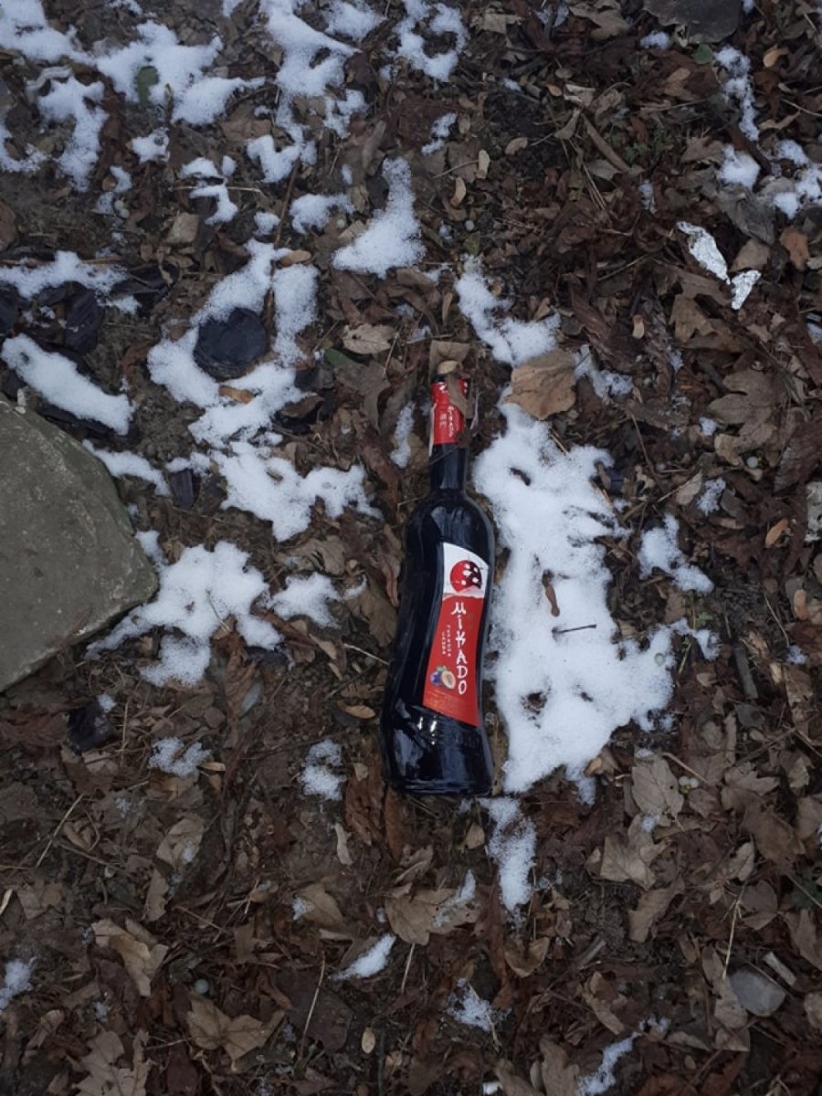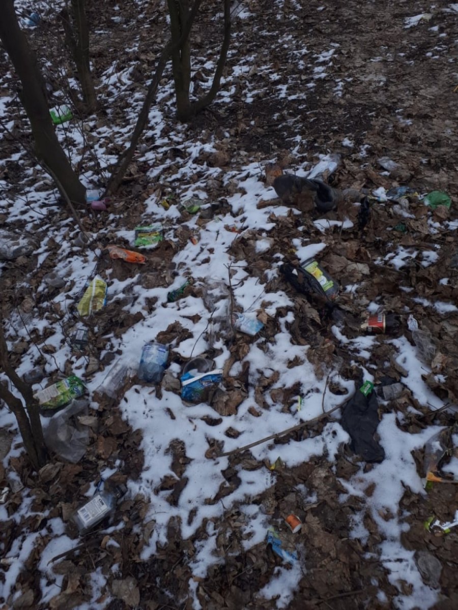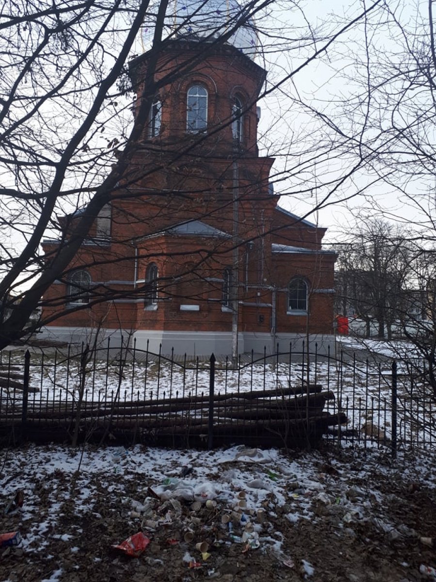 Поряд із храмом та дитячим майданчиком - справжнісіньке сміттєзвалище: порожні пляшки з-під алкоголю, пластикові стакани і інший дрібний мотлох. А хтось і взагалі викинув чорну торбинку із сміттям, мабуть, не спромігся донести до найближчого смітника.