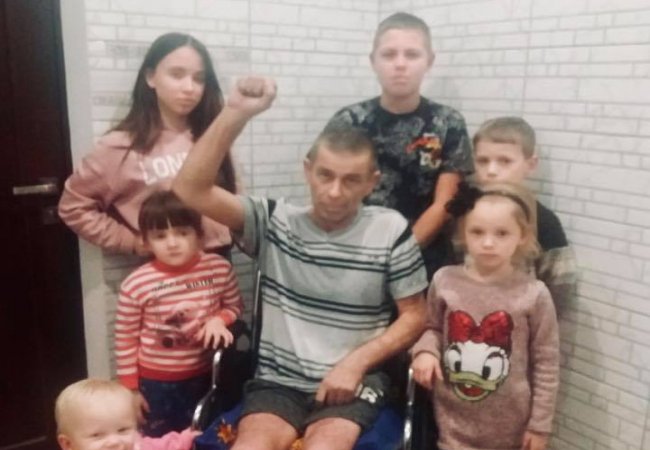 На фото дід Віктор разом зі своїми онуками- вдома і стіни допомагають..