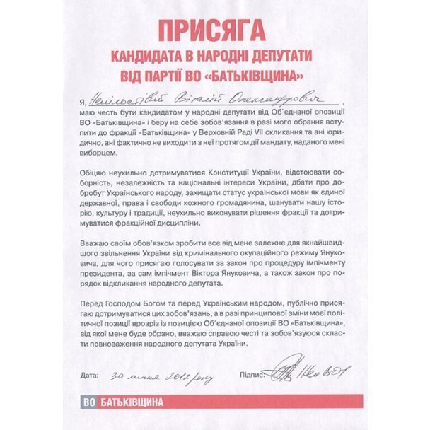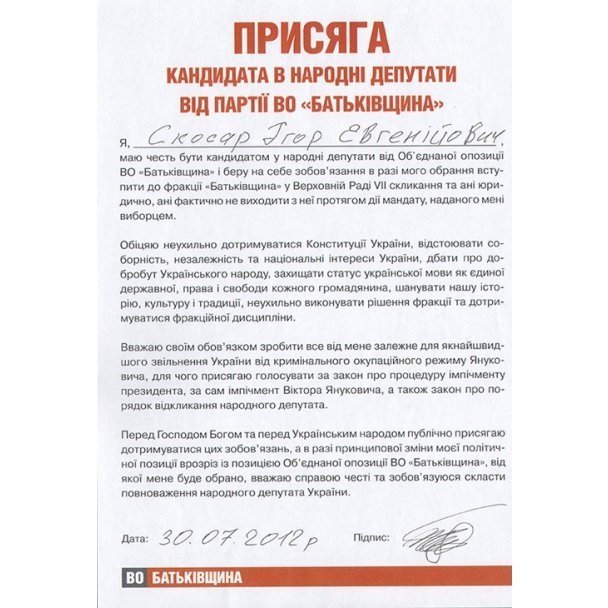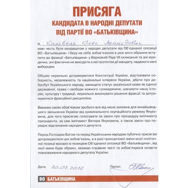 Оприлюднили клятвені присяги «тушок» з «Батьківщини». ДОКУМЕНТ