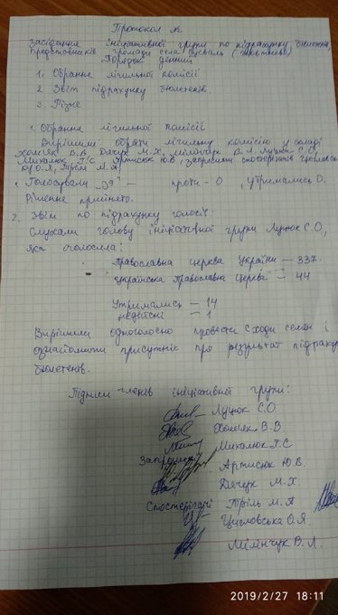 Зідно з результатами підрахунку, 337 селян проголосували за перехід до ПЦУ, за те, щоб лишитися в УПЦ – 44, утрималися – 14, 1 бланк був недійсним.