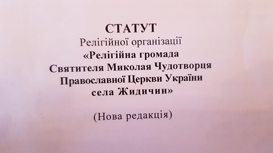 Перша релігійна громада Волині повністю пройшла процедуру зміни підлеглості відповідно до Закону України. Йдеться про офіційний перехід релігійної громади Святителя Миколая Чудотворця села Жидичин до Православної Церкви України. 28 лютого 2019 року зареєстрували Статут релігійної організації.