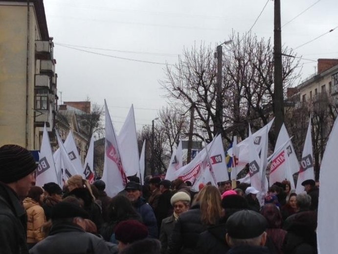 У Житомирі на площі Перемоги почалася опозиційна акція «Вставай, Україно!» Маршем активісти рушили до Майдану Корольова.