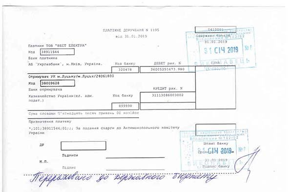Компанія отримала велике замовлення на закупівлю послуг з технічного переобладнання електромереж і безповоротно втратила сплачені державі 15 тисяч гривень за розгляд справи, про це стало відомо від «Верховенство права».