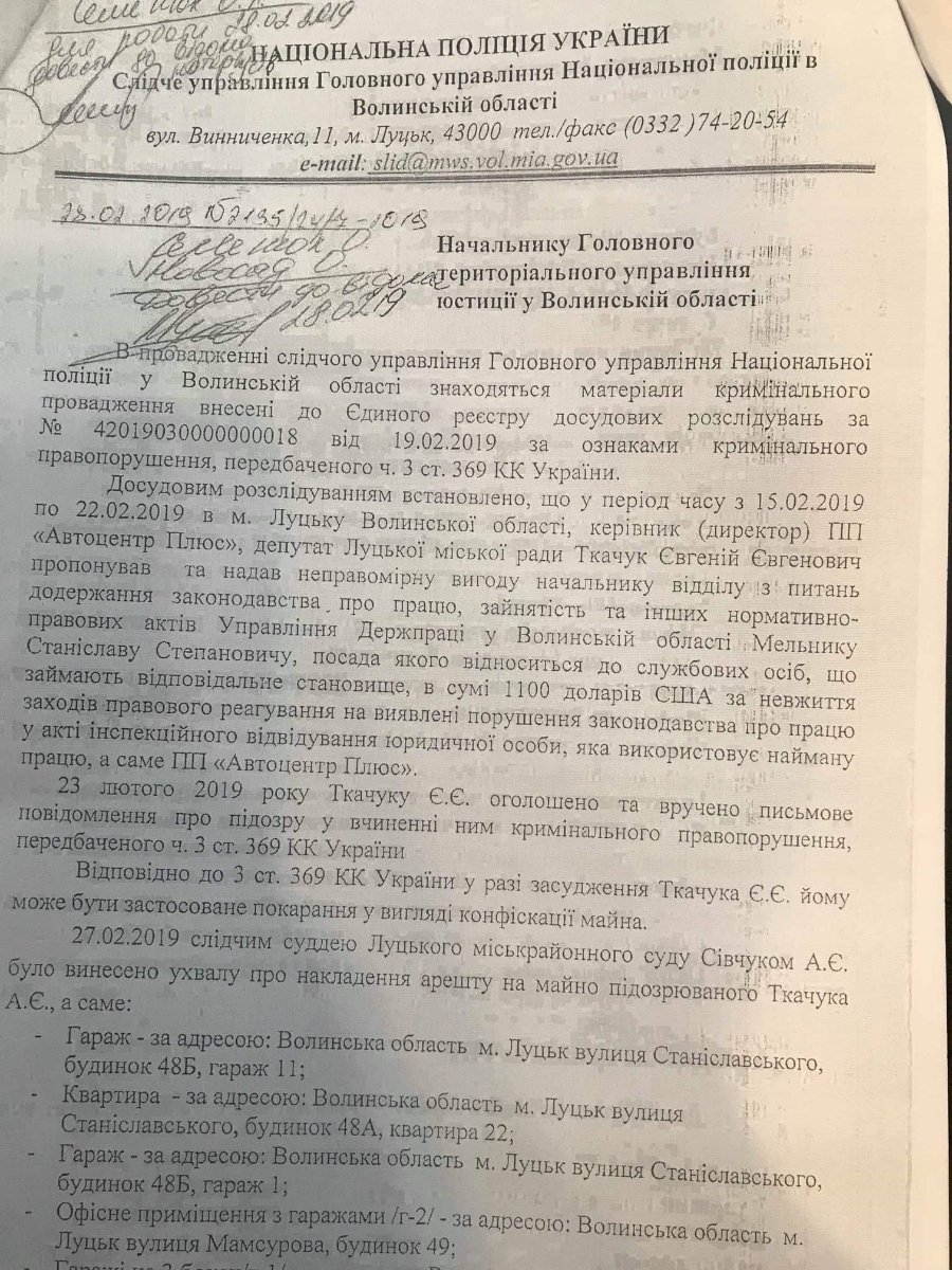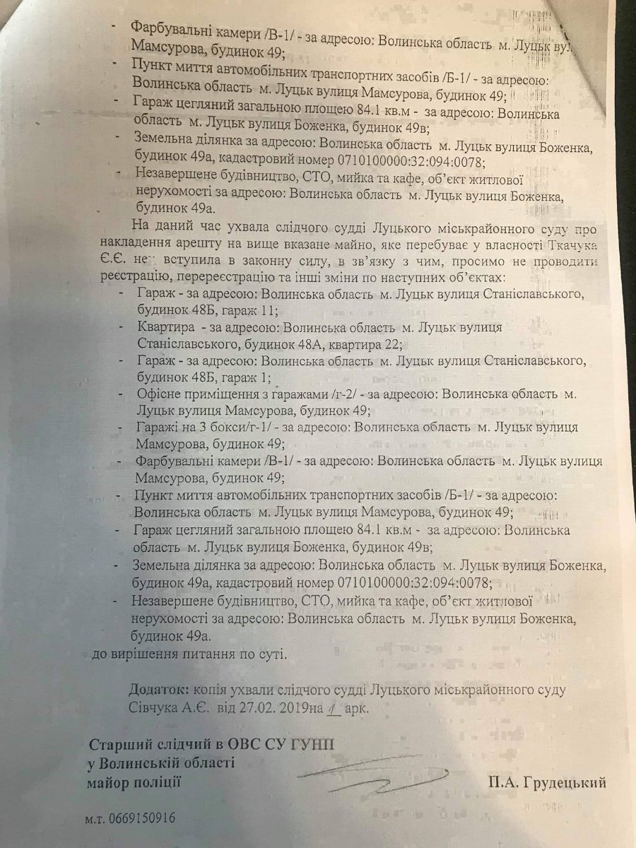 Суд арештував майно депутата Луцькради Євгена Ткачука. ДОКУМЕНТ