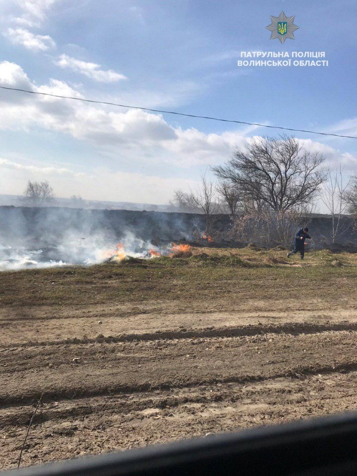 На виїзді з Володимира-Волинського, у напрямку села Фалемичі, горить поле із сухою травою. Через сильні пориви вітру вогонь швидко розгортається.