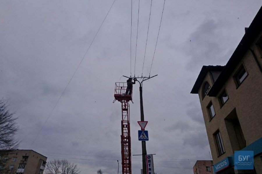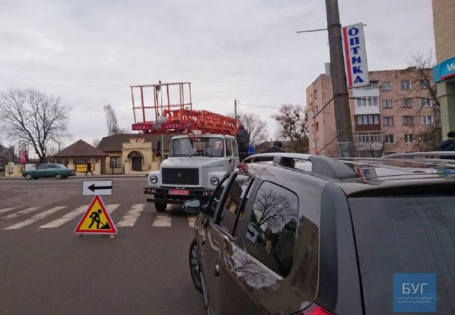 Комунальники випробували нову техніку 5-го березня: за допомогою вишки замінили лампи на стовпах, які освітлюють вулицю Незалежності.